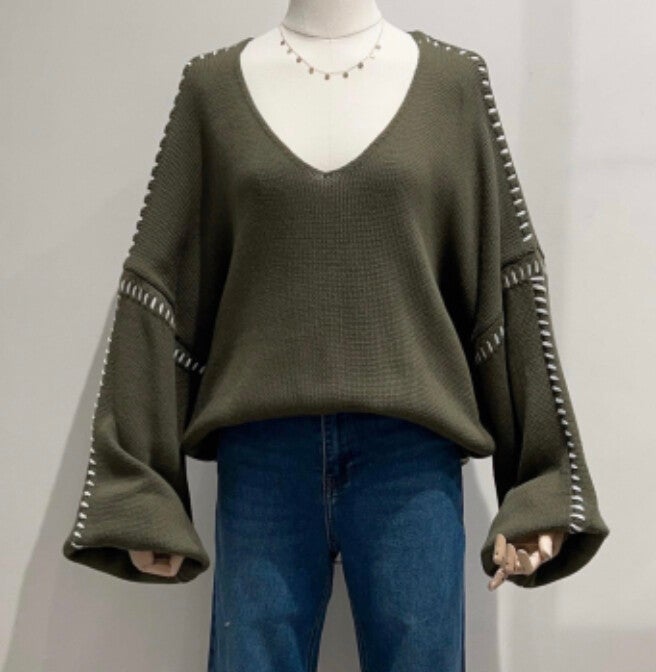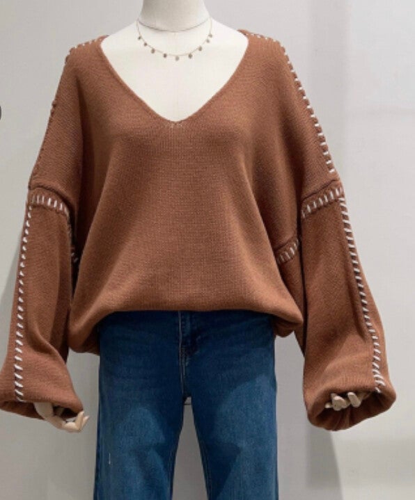 Trui witte stiksels - 3 kleuren