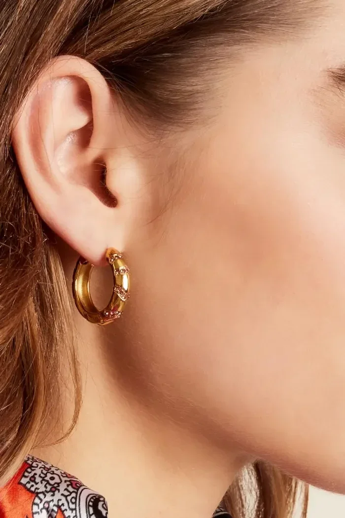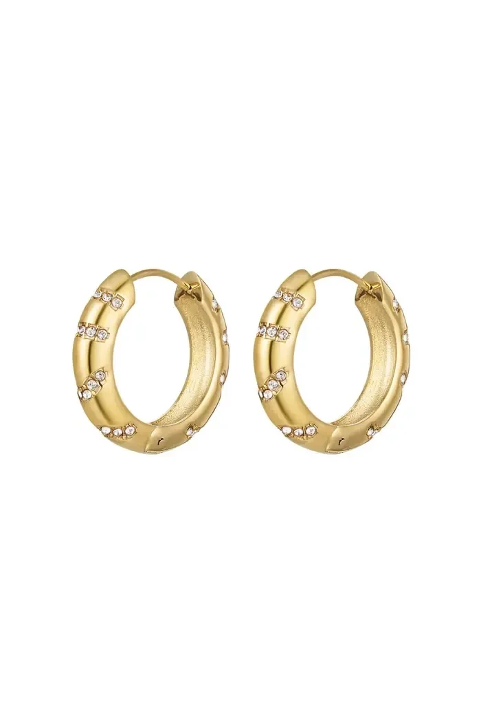 Hoe mooi zijn deze oorbellen met strass streepjes. De oorbellen hebben dankzij de strass steentjes een luxe uiterlijk en zijn perfect te dragen bij uitetentjes, feestjes of de feestdagen. De oorbellen zijn gemaakt van stainless steel in combinatie met strass steentjes en hebben een afmeting van 2,5 cm.
