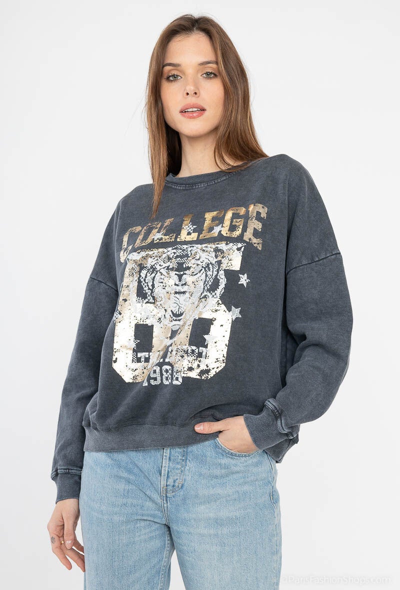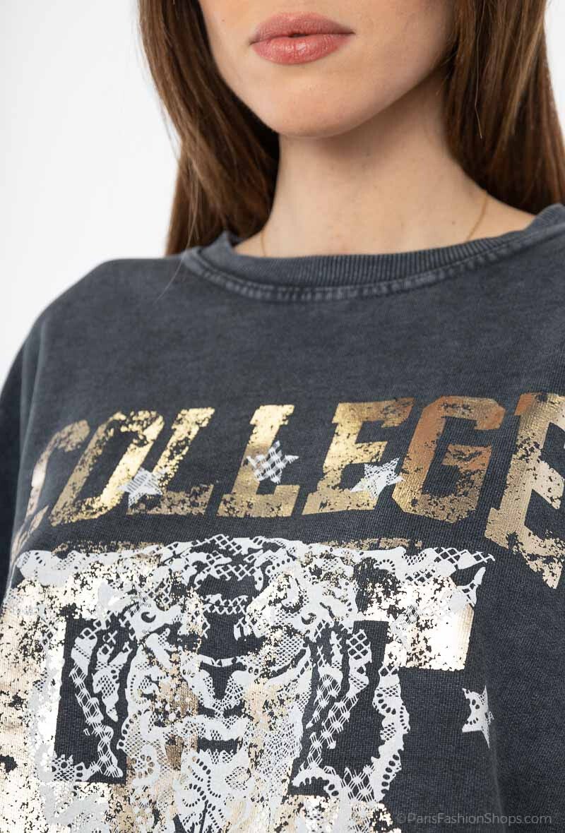 Deze comfortabele, vintage-look trui is gemaakt van zacht, gewassen katoen voor een relaxte en stoere uitstraling. De opvallende COLLEGE-print met tijgermotief geeft de trui een sportieve retro vibe. Dankzij de one-size fit (geschikt voor S t/m XL) valt hij heerlijk ruim en past hij bij elke casual outfit. Perfect voor dagelijks gebruik, chilldagen of een trendy streetwear look.