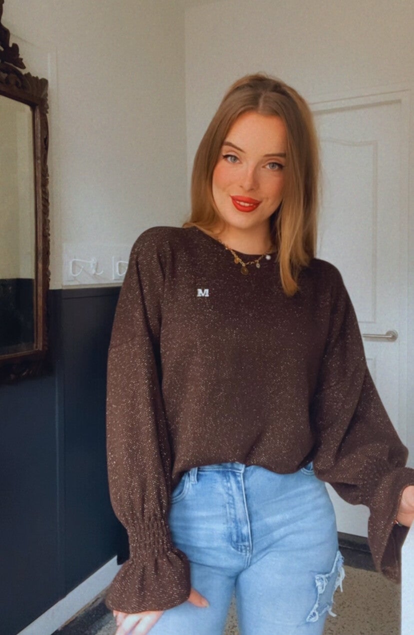 Trendy sparkle top met subtiele lurex glans, geruffelde mouwen en een zachte, comfortabele feel. Een veelzijdig item dat zowel tijdens de feestdagen als in alledaagse outfits perfect tot zijn recht komt.
