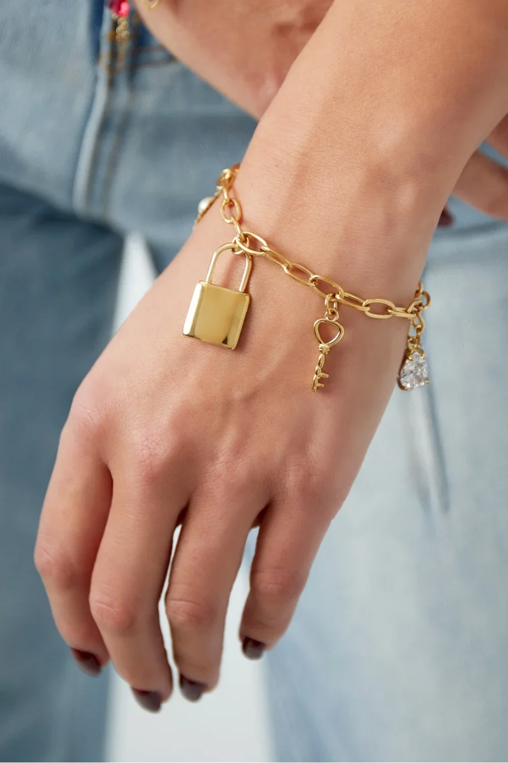 statement sieraad, funky, schakelarmband, slot, sleutel, maan;