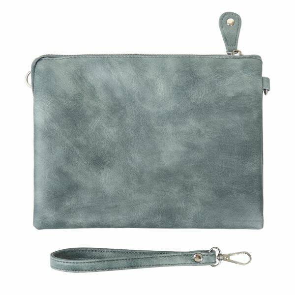 De clutch kan ook als schoudertas worden gedragen.