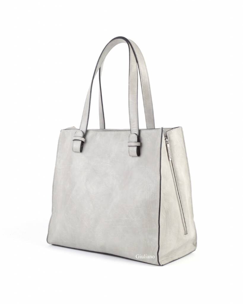 Kunstlederen handtas die sluit met een rits. Met een extra vakje op de voorzijde met afneembaar etui. De binnentas is uitneembaar en door de afneembare schouderband is deze ook als schoudertas te dragen.