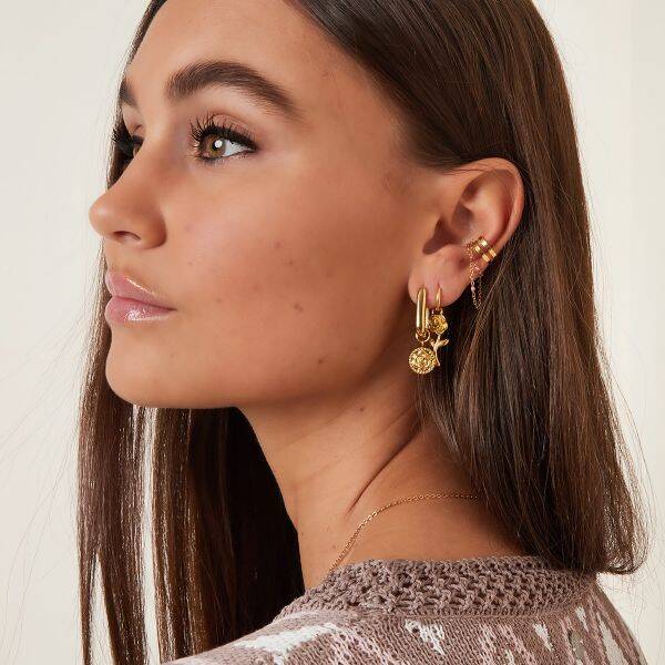 roestvrijstalen oormanchet met ketting en kleine kraaltjes.