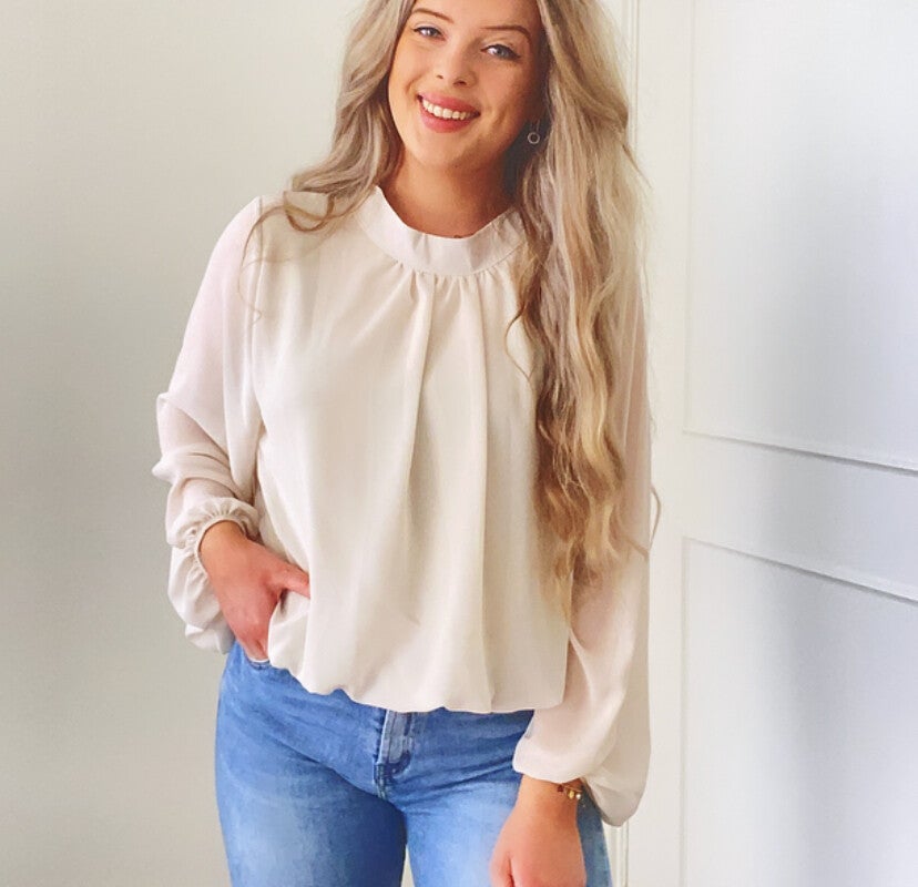 Top in ballon model en trendy mouw. Deze top is geheel gevoerd en gemaakt in een fijne soepele polyester kwaliteit. Dit model is one size en goed t/m maat 42.
