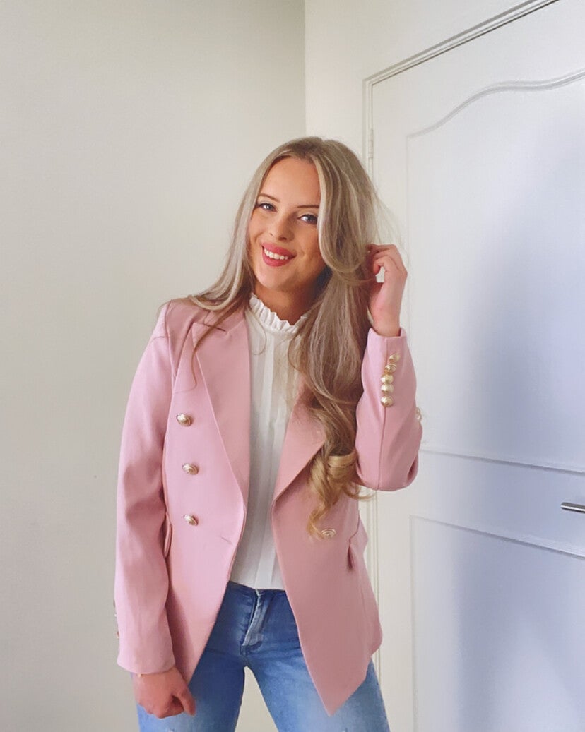 Stijlvolle double breasted blazer met goudkleurige knopen. Deze blazer is geheel gevoerd en heeft schoudervulling.