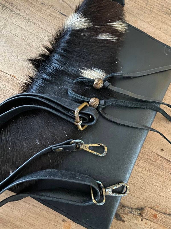 (Let op: Zie foto 2, de details van de hengsels bij deze tas hebben ''versleten'' details. Ook is ieder tasje uniek, het kan zo zijn dat jou vacht gedeelte een andere kleur samenstelling heeft als de tas op de foto. Wel hebben alle tassen een zwart/wit gekleurde vacht.)