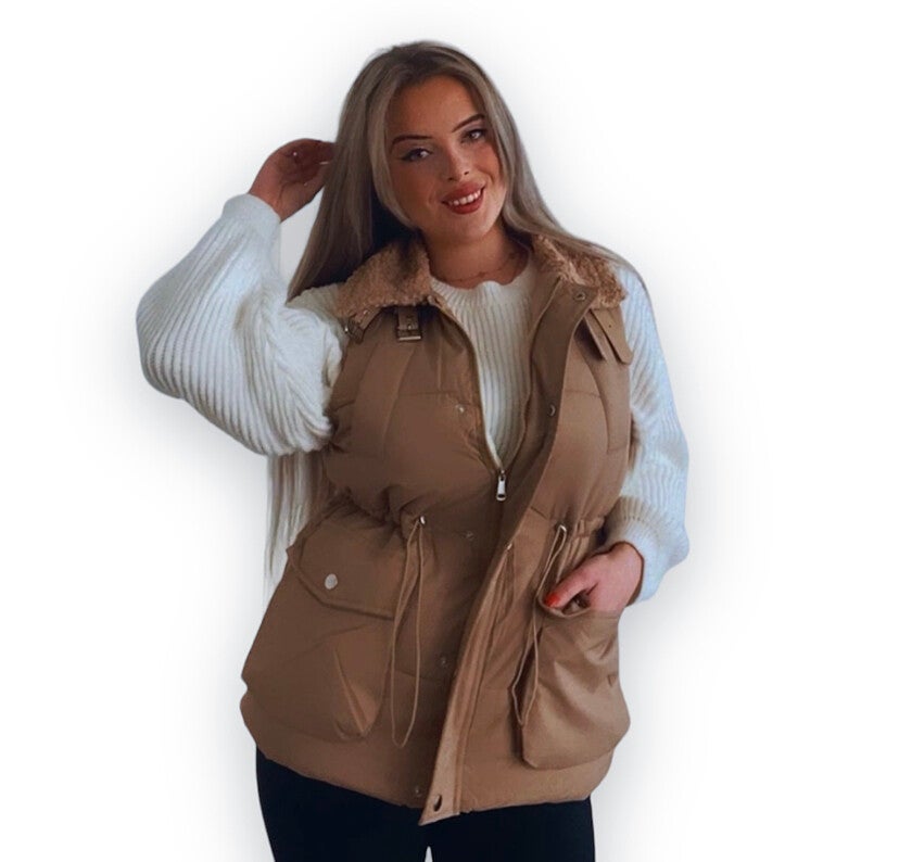 Prachtige bodywarmer met Teddie stof kraag. valt goed op maat.