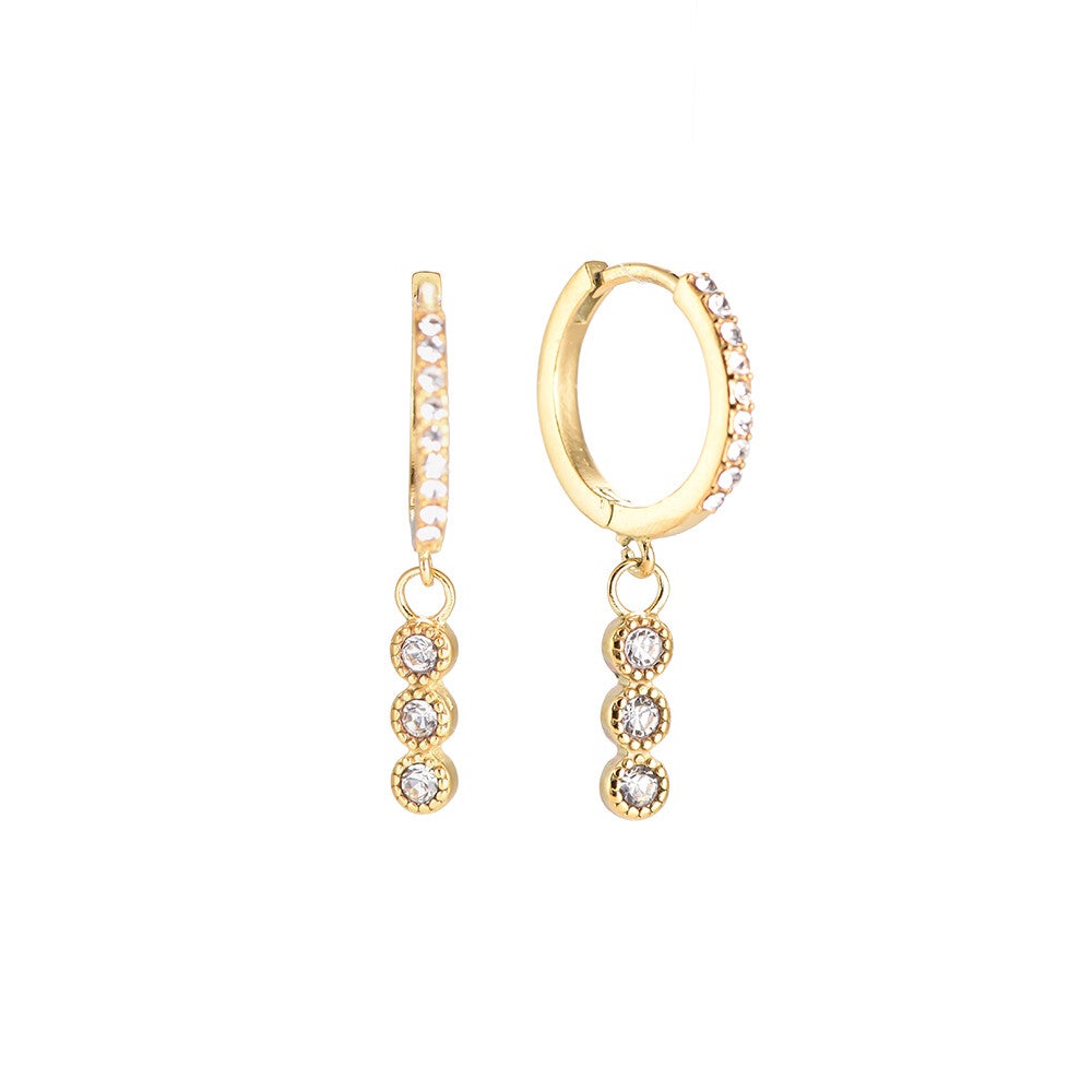 Triple Bead Diamond oobellen - goud